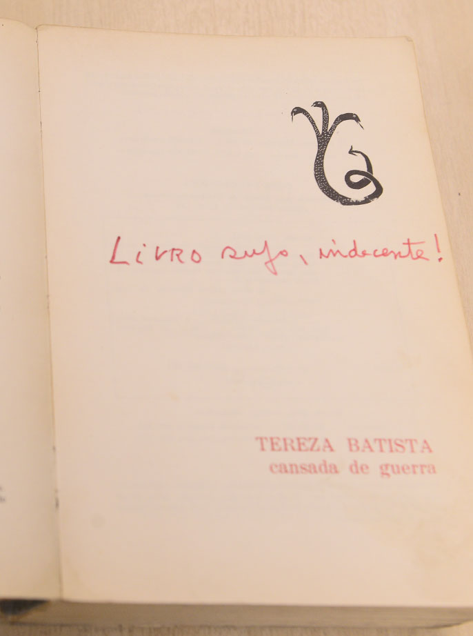 Alguns livros do acervo doado por Leite têm comentários. O romance Tereza Batista cansada de guerra, de Jorge Amado, é um exemplo | Crédito: Mozart Gomes/CMSP