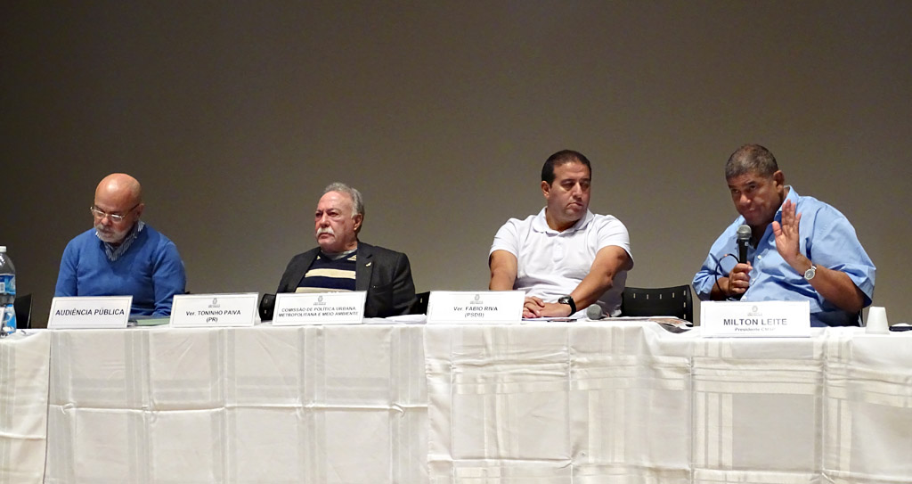 Luiz França/CMSP Previsto para ser votado na próxima quarta-feira (22/8), em segunda discussão no plenário da Câmara Municipal, o Projeto de Lei 722/2015 foi tema de mais uma Audiência Pública neste domingo (19/8). A Comissão de Política Urbana, Metropolitana e Meio Ambiente realizou o debate numa localidade próxima aos moradores interessados na questão – o Teatro Paulo Eiró, em Santo Amaro, zona sul da capital.