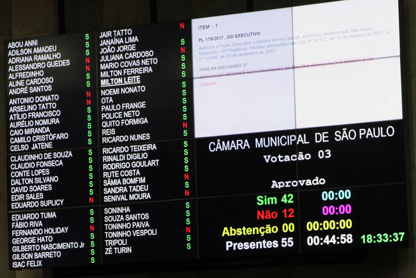 O líder do governo na Câmara, vereador Aurélio Nomura (PSDB), comemorou a aprovação do projeto. “A proposta avançou bastante para que todo o processo de criação da nova SP Negócios seja o mais transparente possível”, disse.