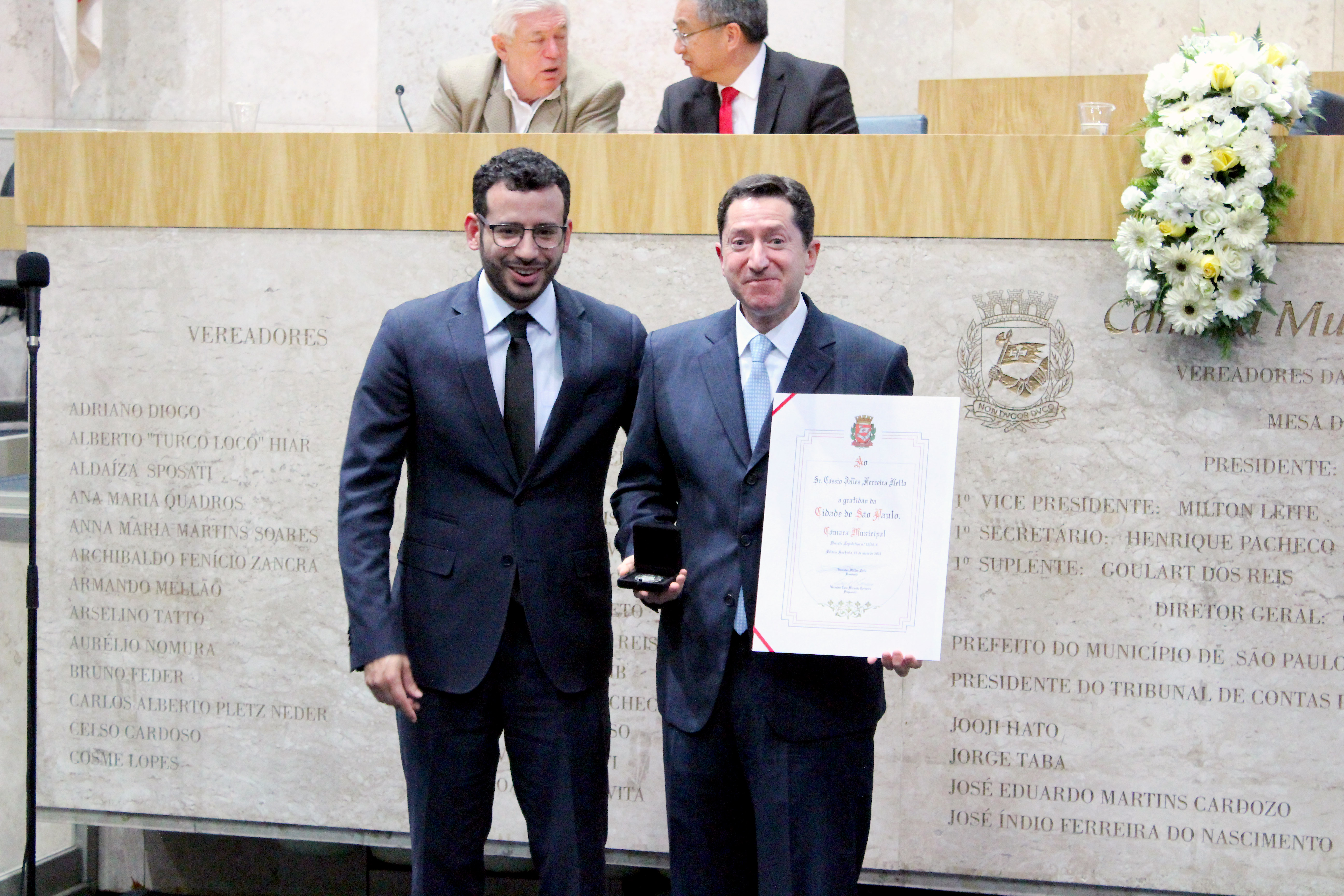 Em Sessão Solene realizada na sexta-feira (17/8), a Câmara Municipal de São Paulo homenageou o advogado Cássio Telles Ferreira Netto, com a entrega da Medalha Anchieta, a maior honraria da casa que sempre segue acompanhada do Diploma de Gratidão da cidade.