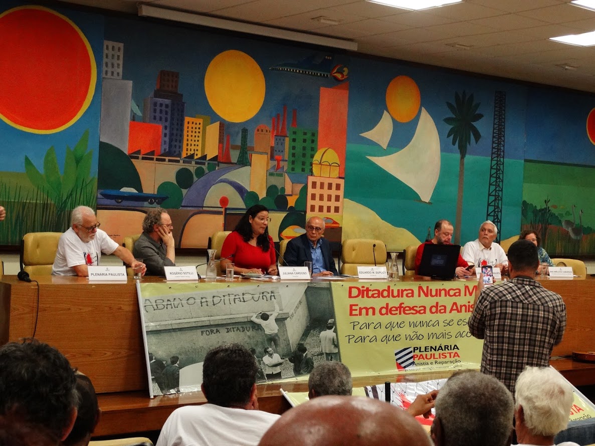 Realizado a pedido da vereadora Juliana Cardoso (PT), o debate foi organizado pela Plenária Paulista Anistia e Reparação, coletivo formado por diversas organizações que defendem a reparação às vítimas da ditadura, justiça e preservação da memória desse período da história nacional.