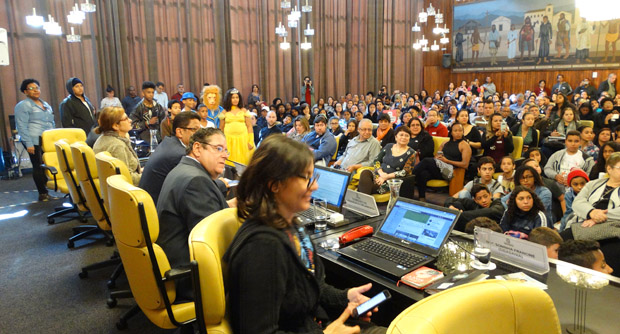 Nesta terça-feira (27), a Comissão Permanente de Finanças e Orçamento realizou audiência pública, na Câmara Municipal, para discutir o corte de vagas e recursos de unidades dos CCA (Centros para Crianças e Adolescentes). Também foi debatida a transferência de gestão dos CCAs da Secretaria Municipal de Assistência e Desenvolvimento Social para a Secretaria Municipal da Educação.