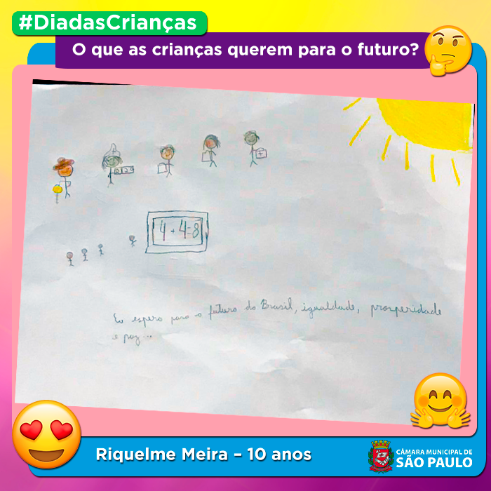 Neste dia 12 de outubro, perguntamos para algumas crianças o que elas gostariam de ver no futuro da nossa cidade e do nosso país. As respostas, expressadas em desenhos, fazem-nos acreditar que podemos contar com a esperança das crianças em um mundo melhor.