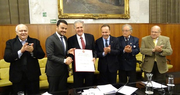 “A felicidade é imensa. Estou recebendo o título oficialmente apenas, porque eu já era um paulistano de garoa e tudo. Vim para cá há 54 anos, aqui me desenvolvi no estudo, trabalho e formei a minha família. Saí de Agudos, uma cidade pequena, com uma das maiores extensões territoriais, e com uma coincidência: quando deixou de ser vila e passou a ser município, o seu nome era São Paulo dos Agudos. Apenas mais tarde o nome foi alterado. Ou seja, eu passei toda a minha vida ativa em São Paulo”, comentou.