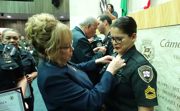Outro homenageado foi o inspetor de divisão e maestro da banda da GCM, José Carlos Milanez, há 27 anos na corporação. “Receber a medalha é gratificante. Por isso, agradeço a vereadora por lembrar-se do nosso nome nesse momento”, disse Milanez.