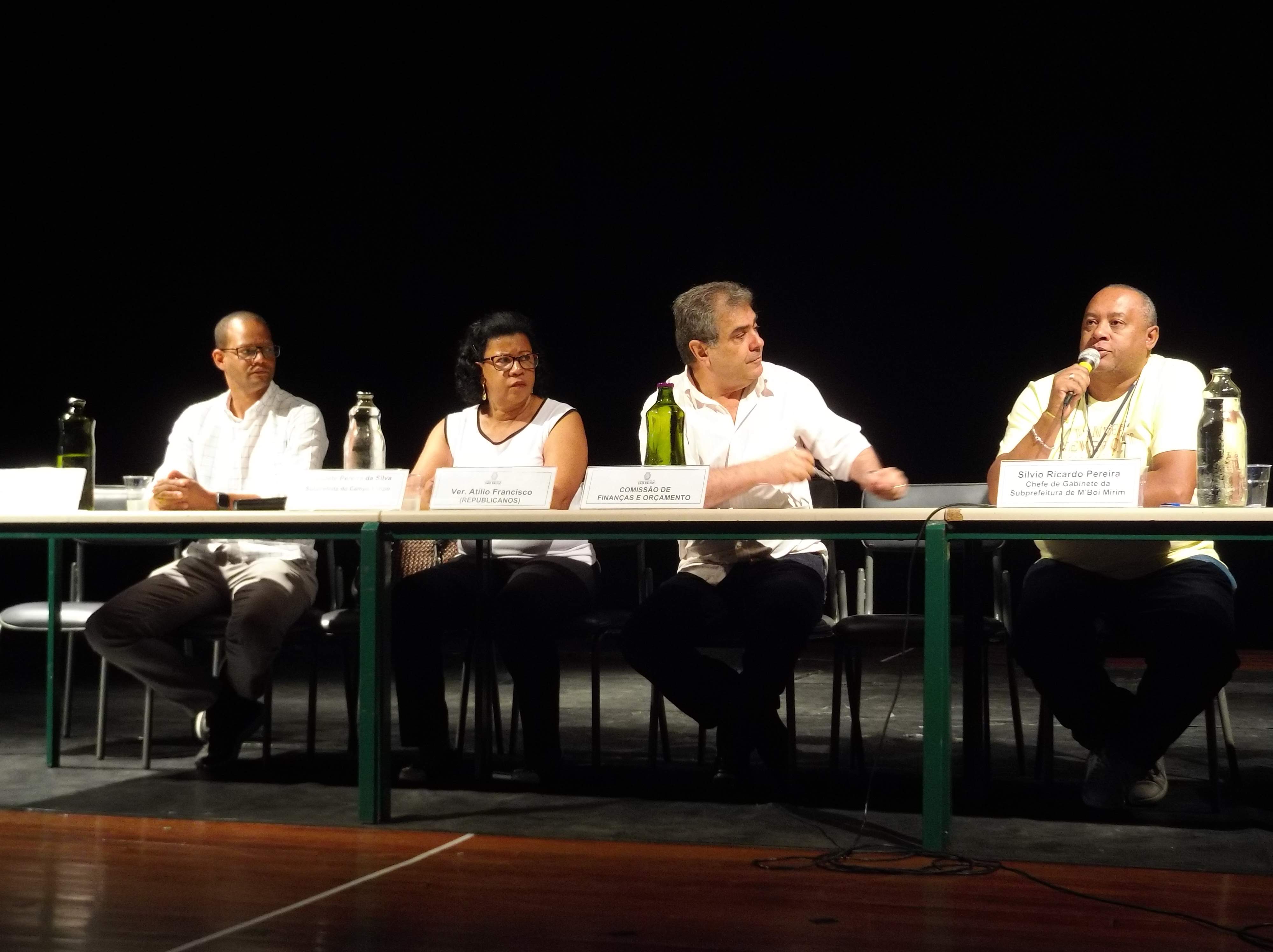 Na audiência deste sábado, moradores da área administrada pela Subprefeitura de M’Boi Mirim pediram maior orçamento para administração local. “Estão havendo muitos cortes em pastas importantes, como Assistência Social, que é importantíssima nessa região. Precisamos de mais recursos paras as administrações dos territórios investirem em áreas como educação, lazer, esporte e assistência social”, defendeu Regina Paixão, representante do FAS (Fórum de Assistência Social) Central.