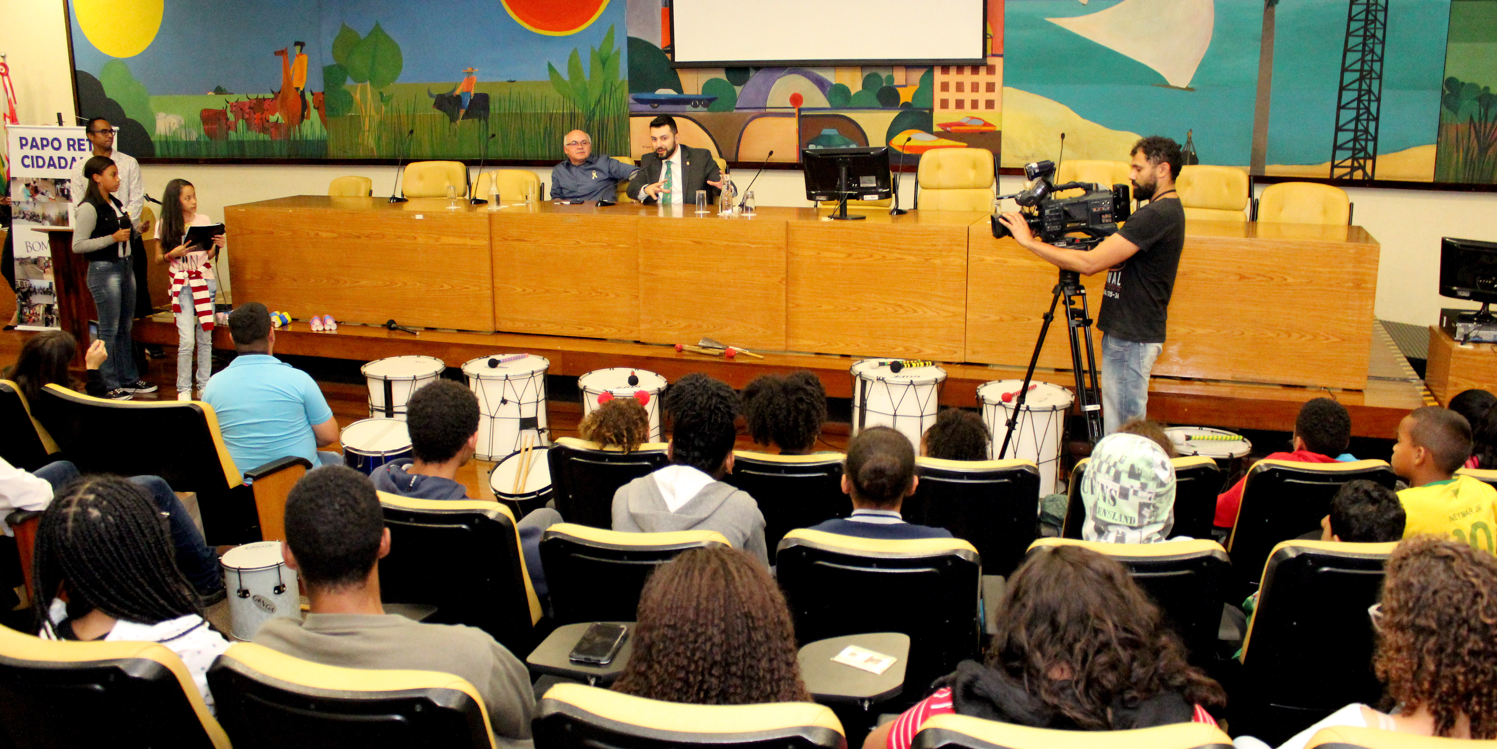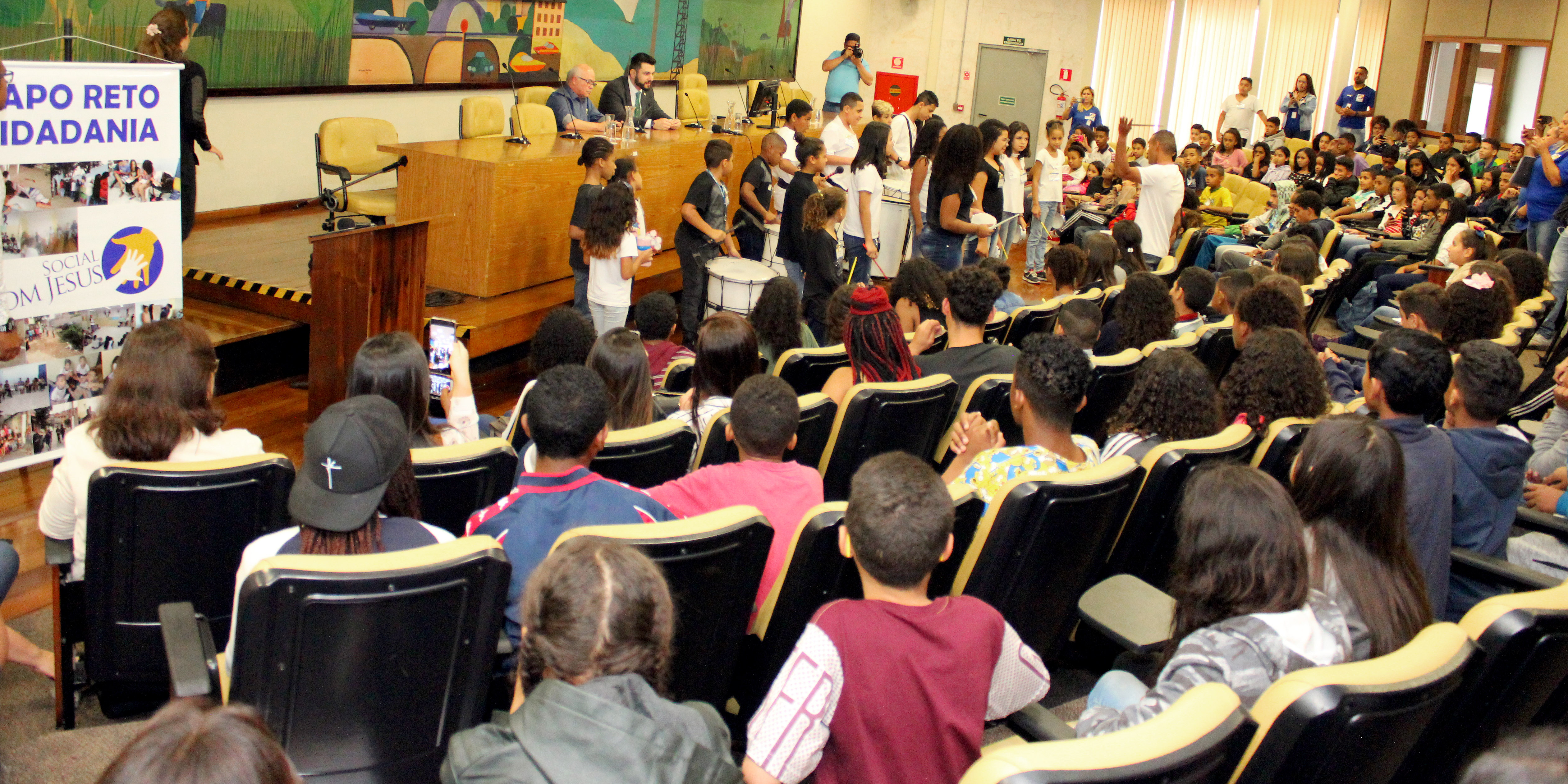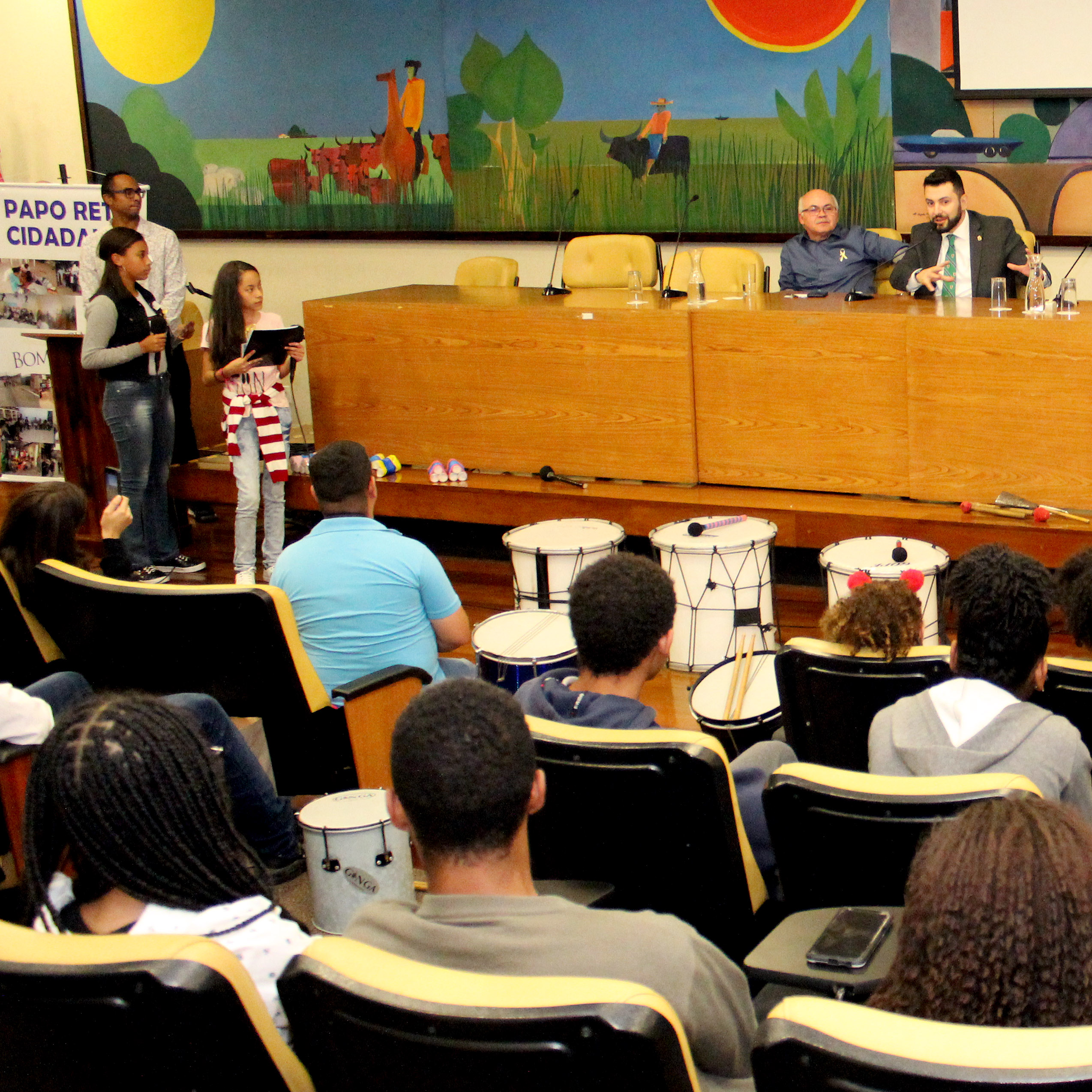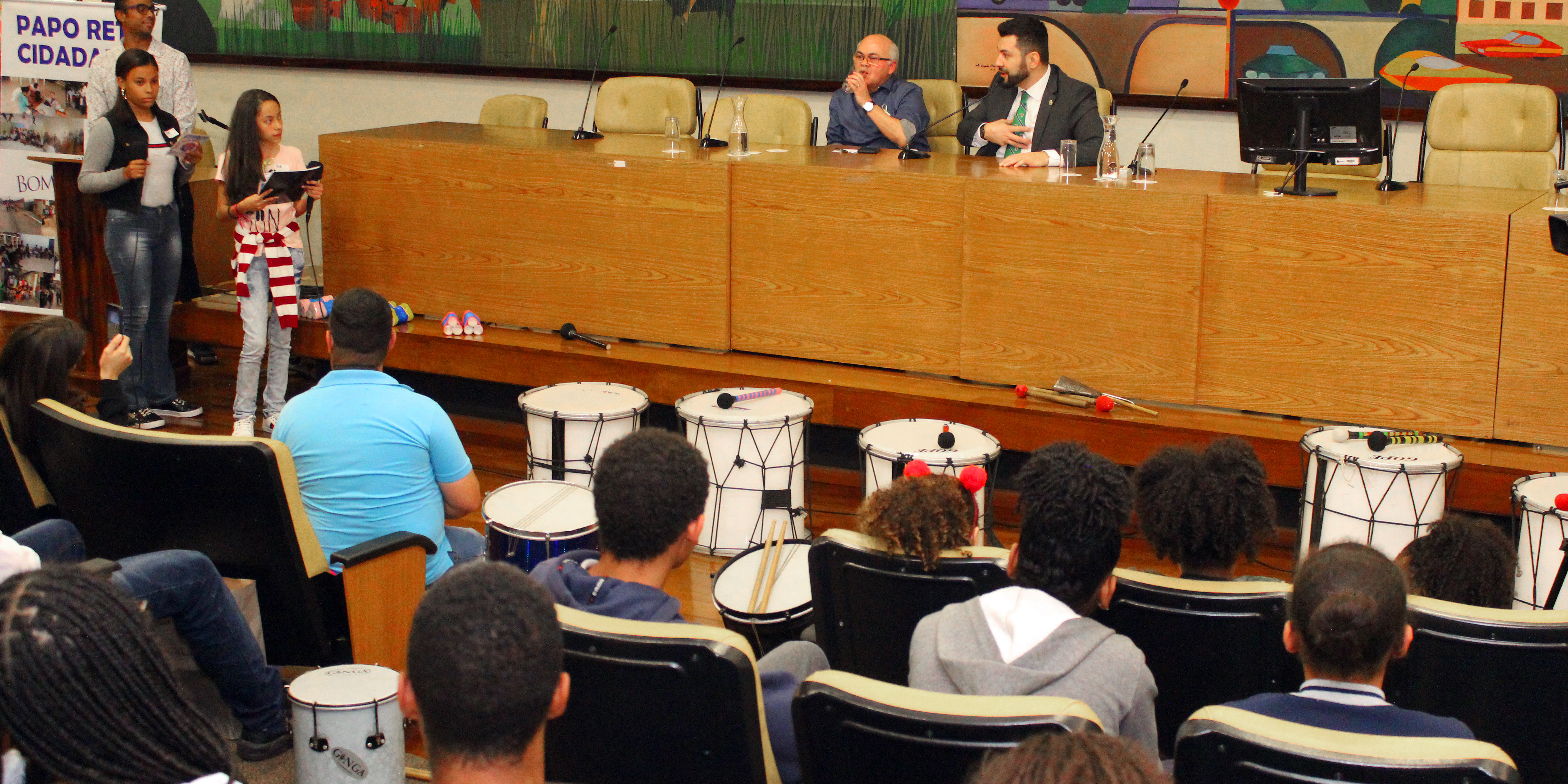 Foi uma tarde de muita conversa e música. O batuque da banda formada pelos alunos do Centro de Crianças e Adolescentes do Jardim Piracuama deu início ao Papo Reto Cidadania. A iniciativa trouxe cerca de 200 jovens, de 6 a 19 anos, que são atendidos pelos CCAs, Centro de Crianças e Adolescentes, da zona sul de São Paulo.