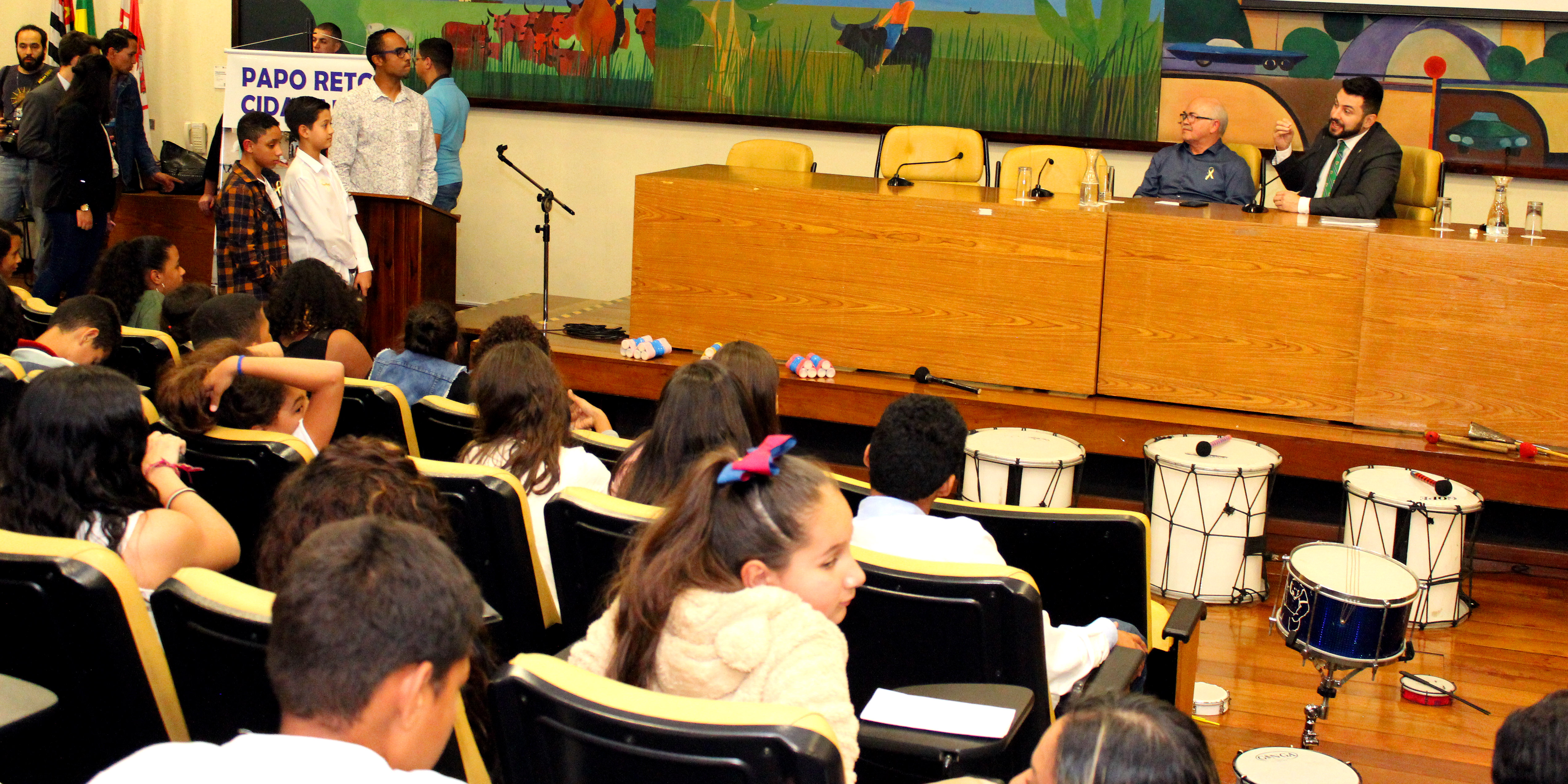 Os jovens ocuparam o auditório Prestes Maia, na tarde da última sexta-feira. Em grupos, eles foram até o microfone para tirar dúvidas sobre o funcionamento do legislativo. Antes, durante o mês de agosto, eles participaram de diversas atividades dentro das instituições de que fazem parte.