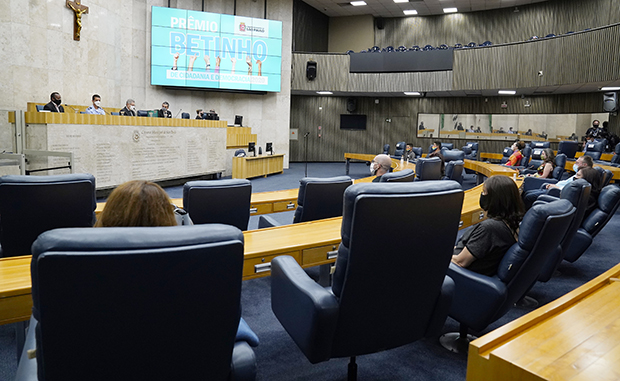 A Sessão Solene, presidida pelo vereador Eliseu Gabriel (PSB), foi realizada no Plenário 1º de Maio da Câmara Municipal de São Paulo. Os projetos inscritos no Prêmio Betinho de Cidadania foram avaliados por uma comissão julgadora, formada por representantes de entidades. Para premiar os melhores trabalhos, os julgadores analisaram os estímulos à organização e à participação da comunidade, as ações multiplicadoras, as soluções inovadoras, além dos resultados efetivos na qualidade de vida das pessoas, em especial das que vivem em situação de vulnerabilidade.