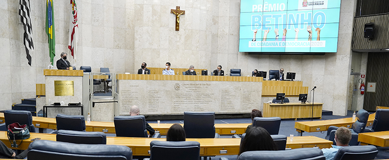 Afonso Braga | REDE CÂMARA Na noite desta sexta-feira (23/10), a Câmara Municipal de São Paulo entregou o Prêmio Betinho de Cidadania e Democracia 2020. A premiação do Legislativo paulistano reconhece o trabalho de organizações sem fins lucrativos que desenvolvem projetos na capital paulista para combater a fome, a exclusão, a miséria e a violência.