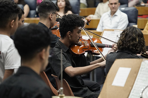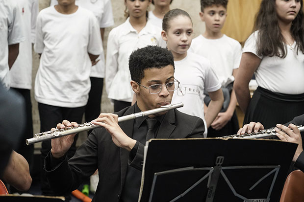 Após as considerações, a AEB (Associação Evangélica Beneficente), inscrita no Prêmio Betinho 2023, fez uma apresentação artística sobre o projeto de musicalização ‘Criar & Tocar’. O projeto atende cerca de 100 crianças e adolescentes da região de Capão Redondo – zona sudoeste da cidade de São Paulo.