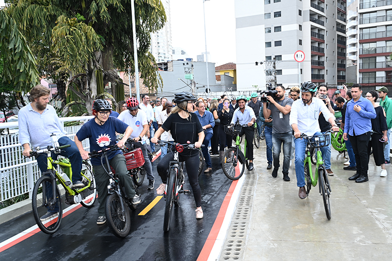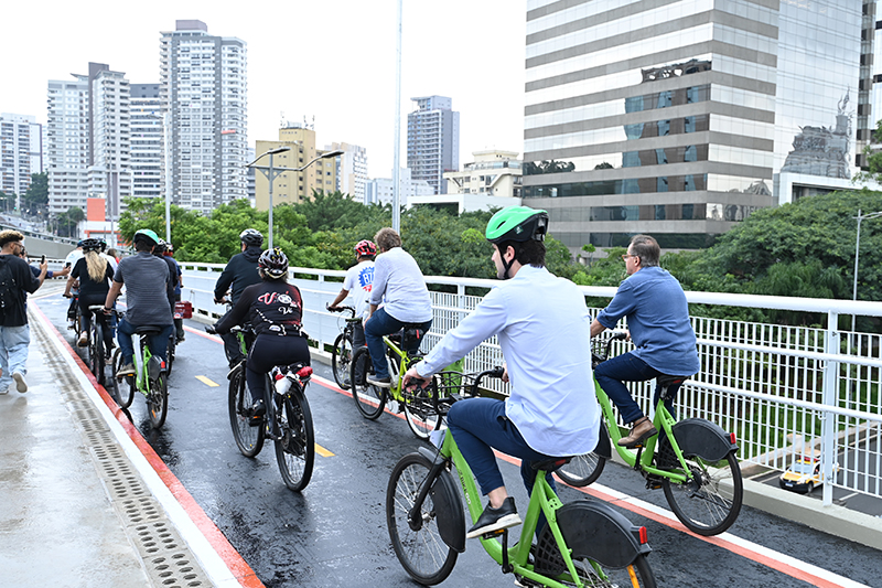 “A cidade passa a ganhar um equipamento importante para o uso de bicicleta, fazendo com que a gente possa passar por cima do rio, interligando regiões que estão em lados opostos e, portanto, avançando no sistema cicloviário da cidade de São Paulo”, disse o prefeito Ricardo Nunes.