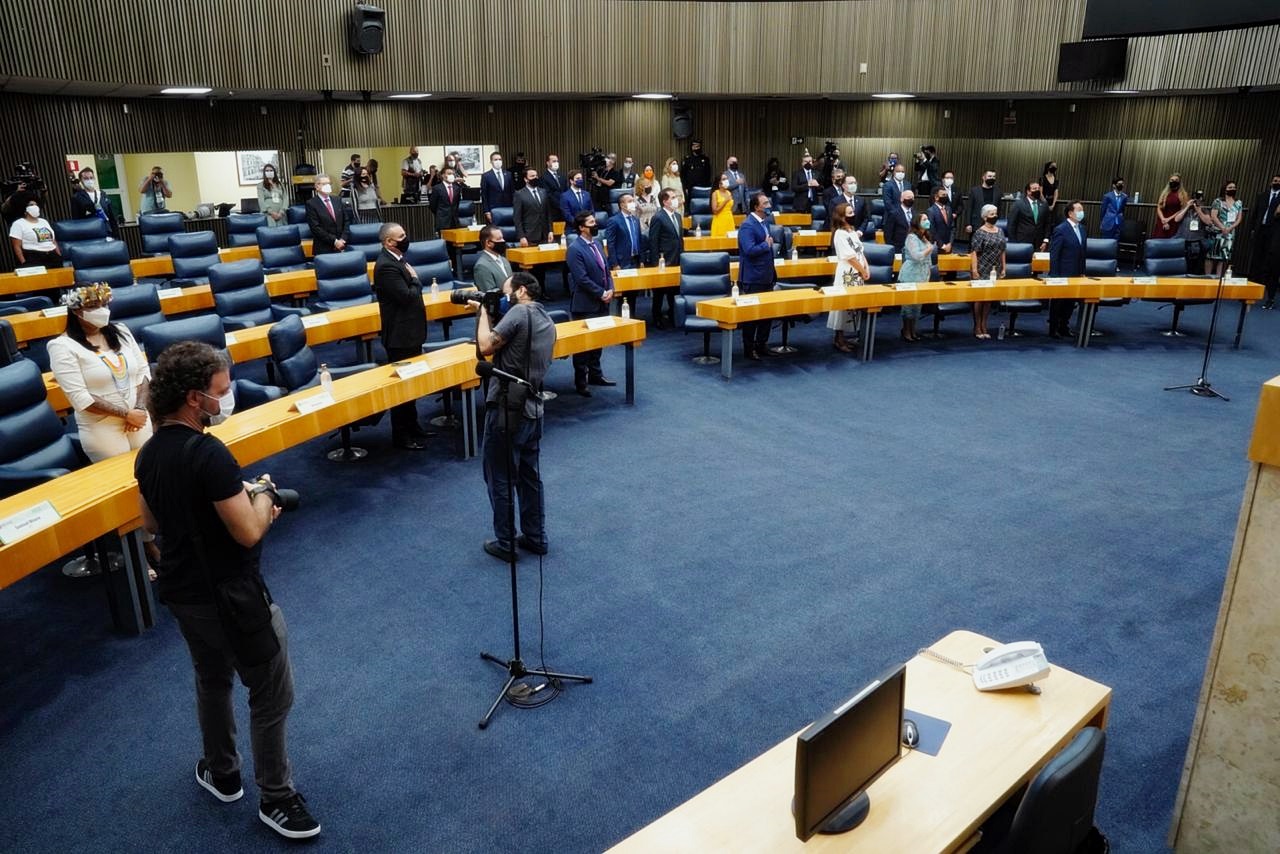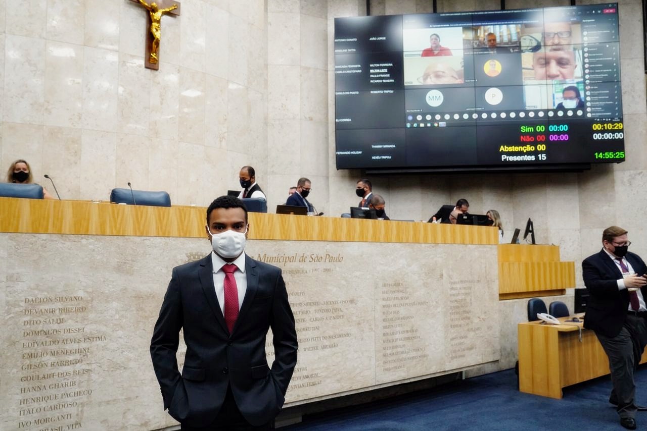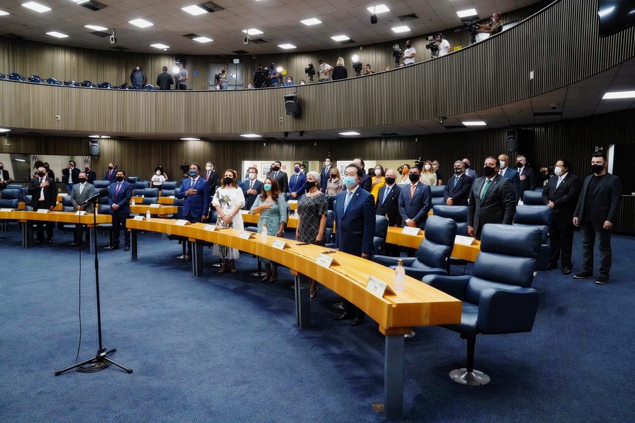 Afonso Braga | REDE CÂMARA Os 55 vereadores eleitos em novembro de 2020 tomaram posse em cerimônia realizada no Plenário 1° de Maio na tarde desta sexta-feira (1/1). Os parlamentares assumiram os seus respectivos mandatos para a 18ª Legislatura da Câmara Municipal de São Paulo (2021-2024).